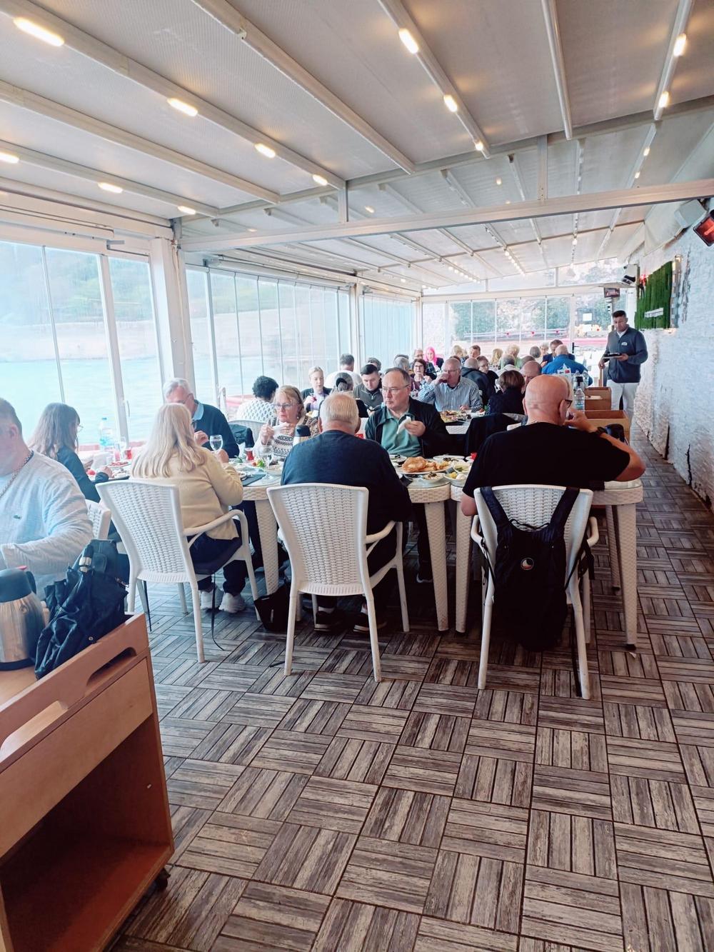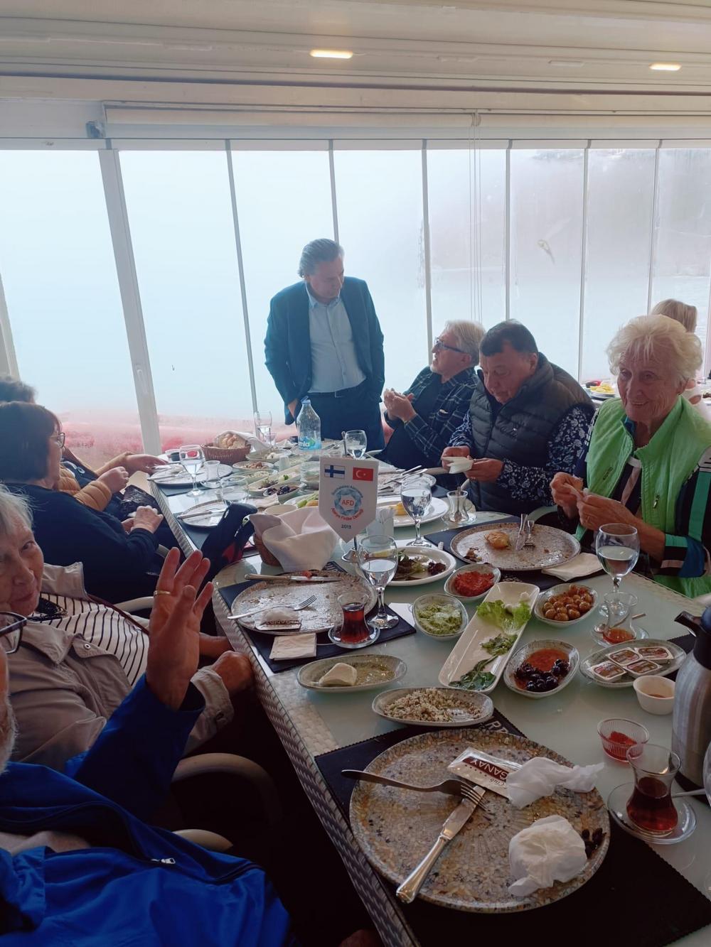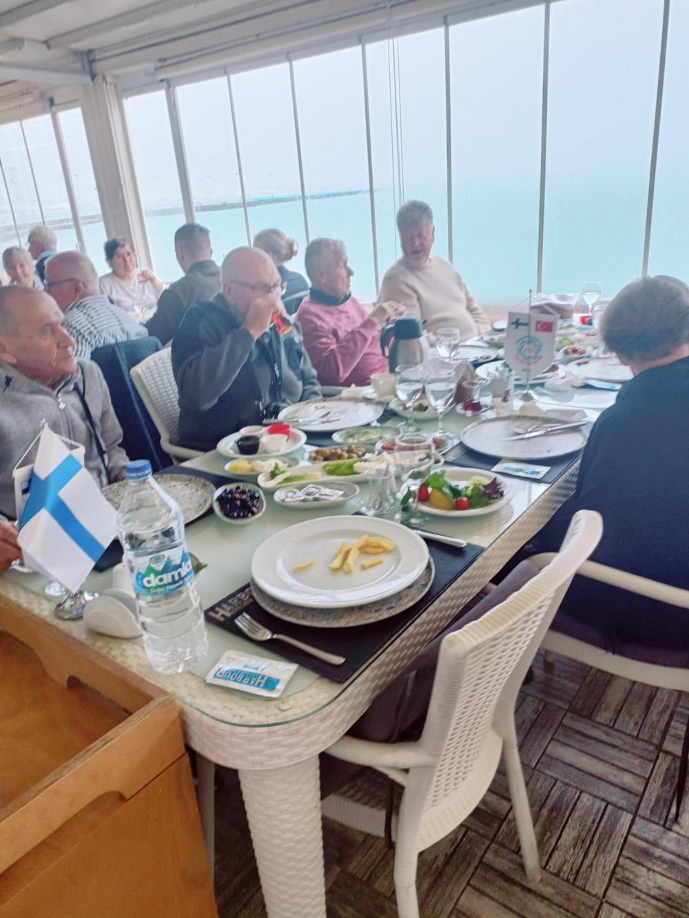 Kokoonnuimme Harbour Kitchen & Bar ravintolaan Alanyassa olevien suomalaisten joukolla, yhteiselle kavaltille.