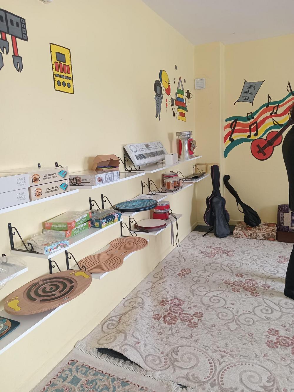 Sisällä luokkahuoneissa ei ollut pulpetteja, vaan paksut matot rullattiin lattialle ja opiskelu tapahtui niiden päällä. Luokkatila oli jaettu erilaisia toimintoja varten mm. lukunurkkaukseen kirjoineen, soittonurkkaukseen eri soittimineen ja muualla oli upeita aivoja aktivoivia pelejä sekä silmän ja käden yhteistyötä aktivoivia puuhia.